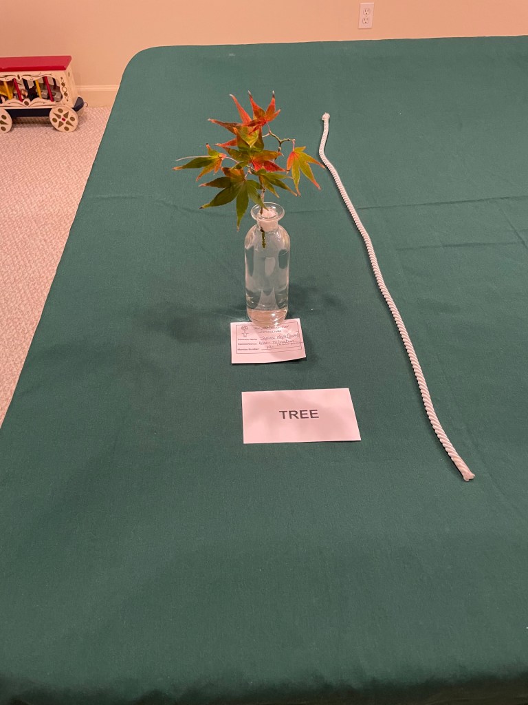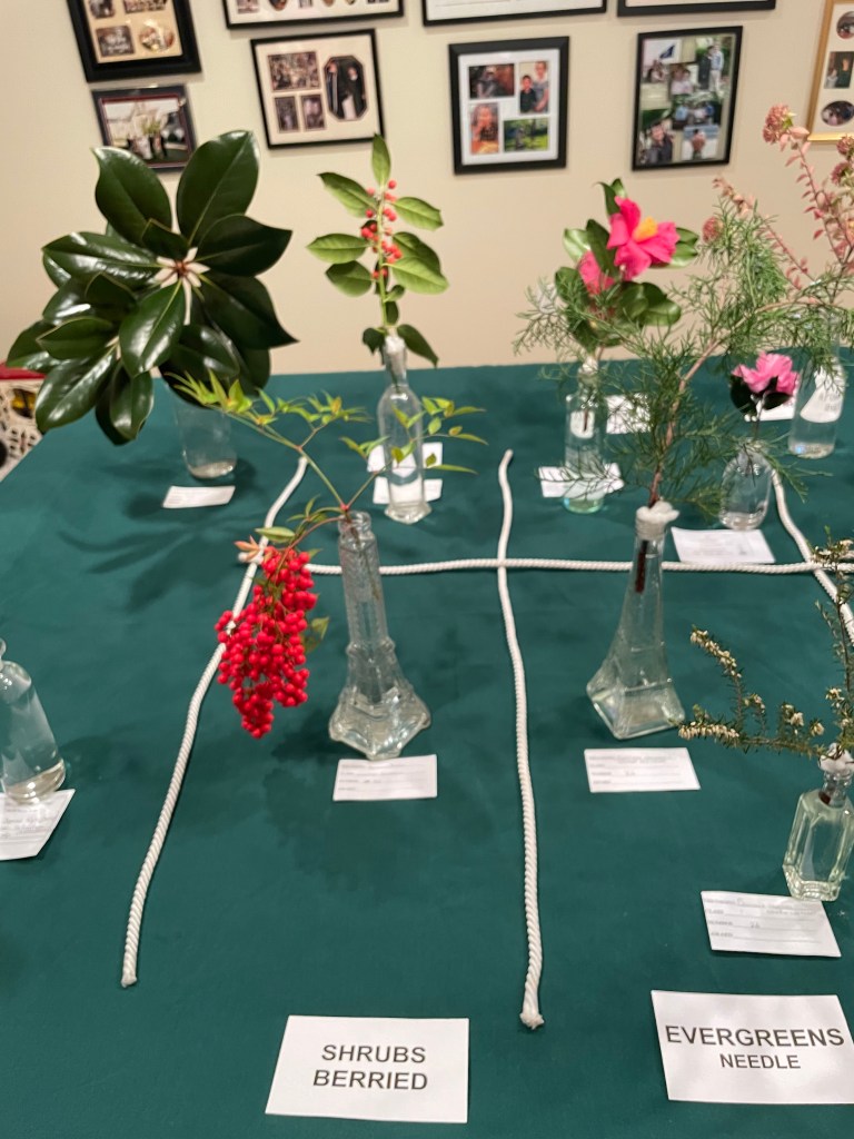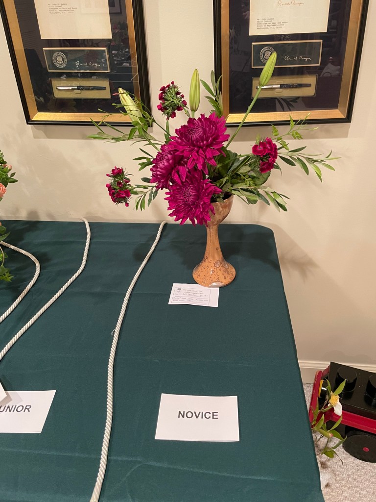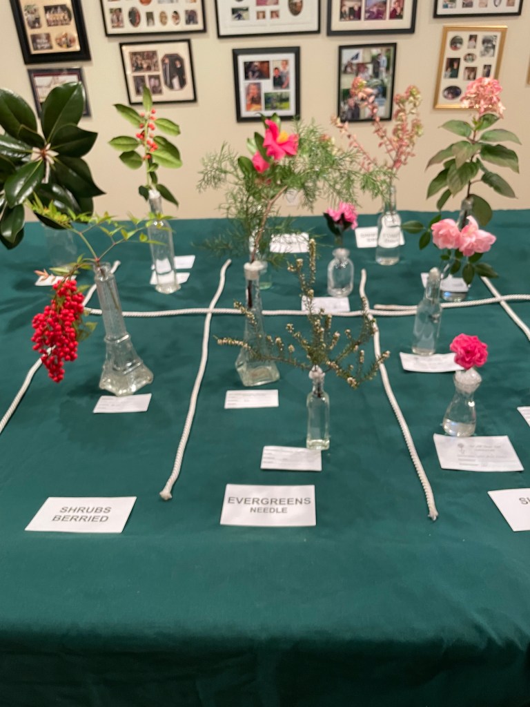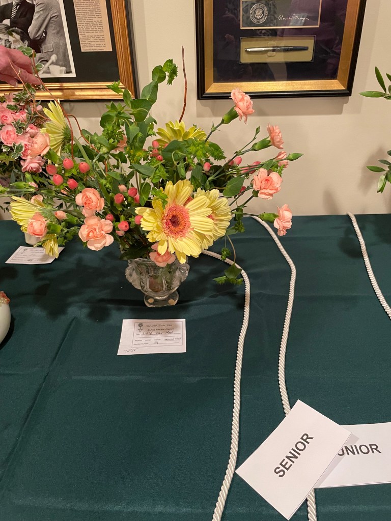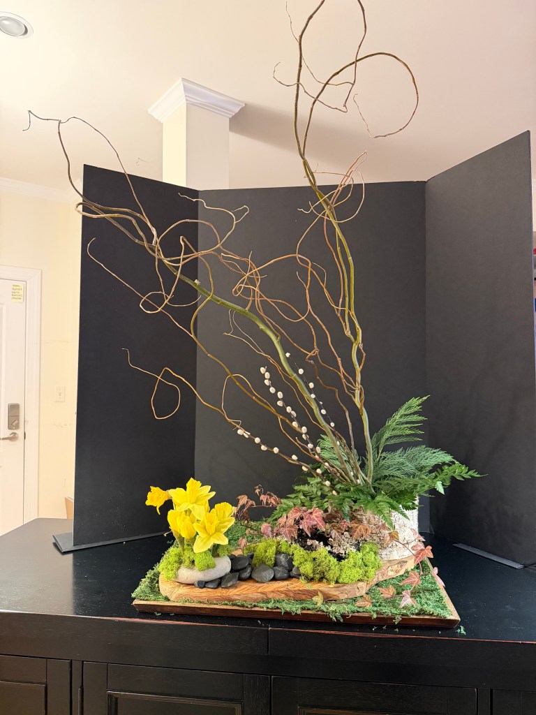 2023 April – Exhibits: Class: Vegetative Design, Large Size; Open: Earth Day Mass Arrangement, accessories allowed, Medium Size.