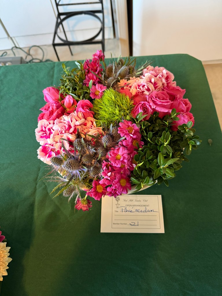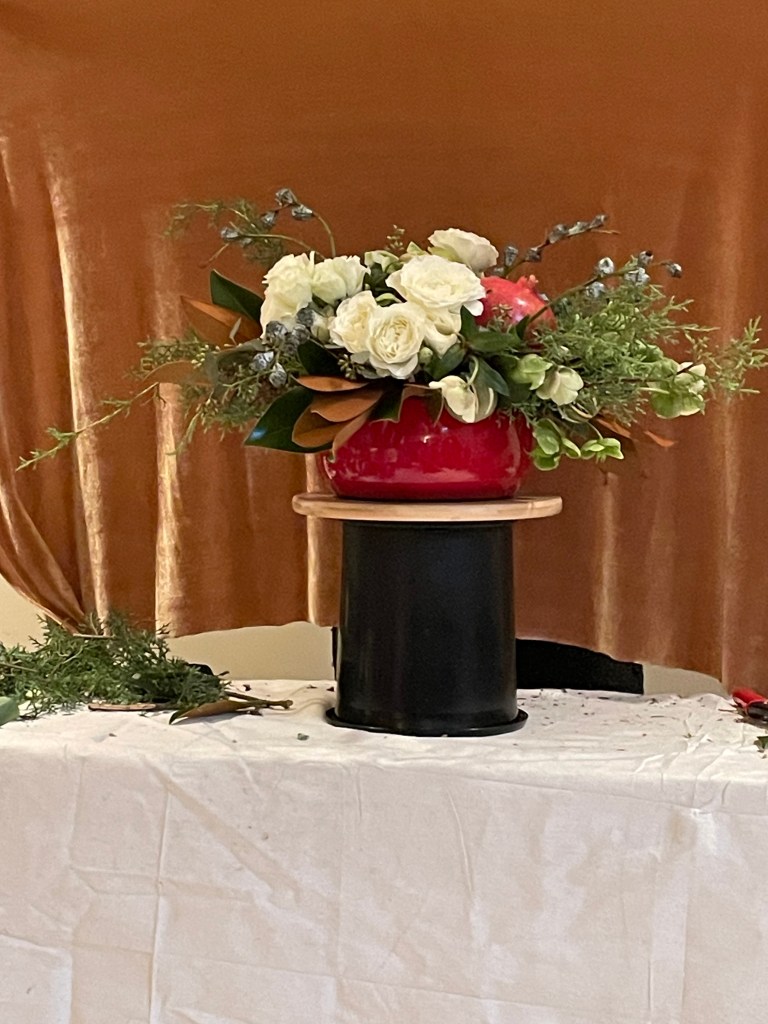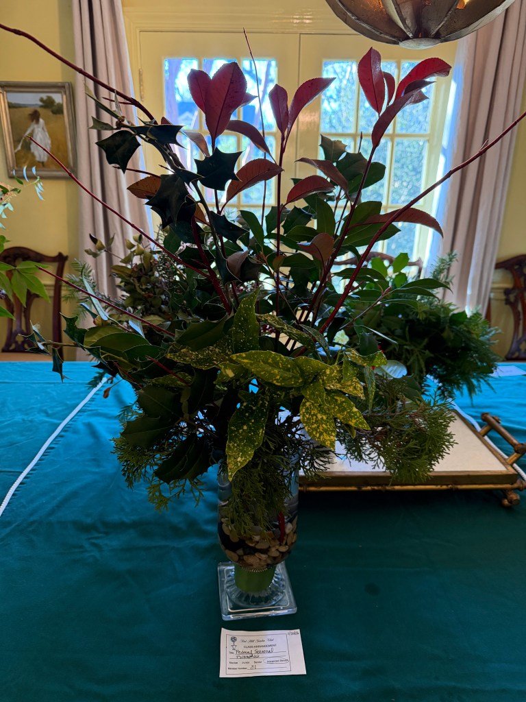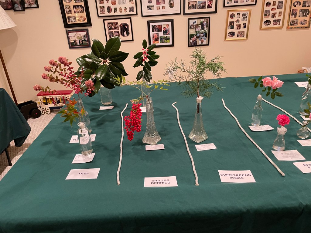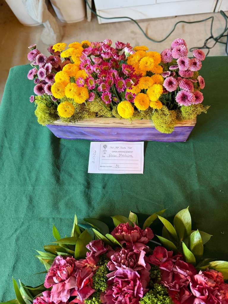 This year’s Team Challenge features a mantel arrangement that includes live flowers and greens. In addition, we are following up on an outstanding spring 2025 presentation by encouraging faux florals to be included in the mantel arrangement. Medium size – 8” to 18”; easily placed on a fireplace mantel, one-sided view. Containers, flowers, greens and some faux floral items will be provided by Red Hill. Members may also bring faux floral items for possible inclusion in the arrangement challenge. Members are to bring their own arranging tools (clippers).Participating members will receive credit for an arrangement. The judge will provide an audible judging experience.