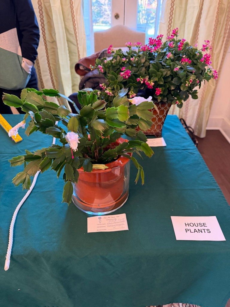 Exhibits – CLASS: Pot-et-fleur for Thanksgiving, mediumement, fall colors, medium. OPEN: Wrapped Package Design in Preparation for the holidays, large.