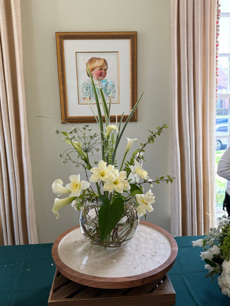 Exhibits: CLASS: Functional Tray Design to honor Mother’s Day. OPEN: Low Centerpiece Design for a table of 8; spring colors, accessories allowed.